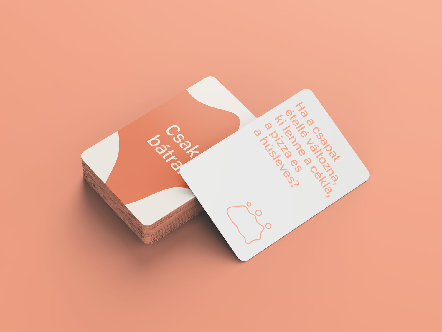 Ebben segít a szervezetpszichológusok által összeállított CSAK BÁTRAN MAGATOKRÓL kártyacsomag, amely könnyedebb és komolyabb beszélgetésindító kérdéseket egyaránt tartalmaz. Használd a lapokat bárhol, bármikor, és tapasztald meg a beszélgetések erejét!
